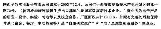 陜西子竹電子有限公司成立于2003年12月,位于西安市高新技術產業開發區錦業一路72號(陜西雄華RF連接器生產出口基地)。主要從事電子制造服務及電子產品的研發、設計、試驗和制造服務。是集生產、銷售和服務為一體的電子加工企業,專業的PCB制造商。廠區面積共計6500m2,并配有員工集體宿舍(配備空調、WIFI、專職保潔)。